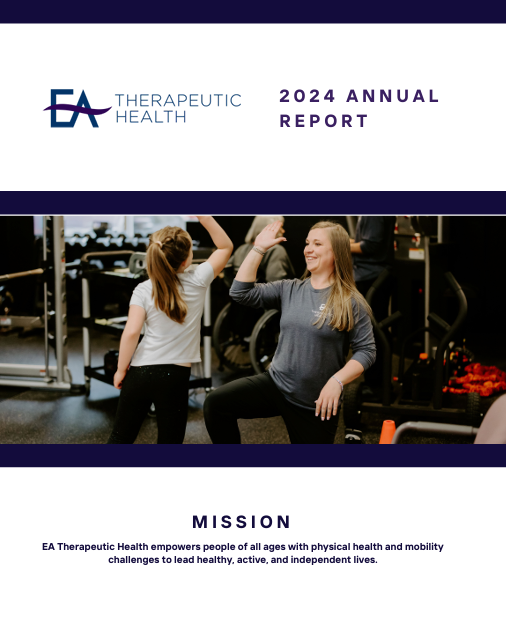Explore our impact, stories, and results from the past year in our 2024 Annual Report. Click here to read how EA Therapeutic Health is expanding access to neurologic rehabilitation, supporting our community, and planning for the future.